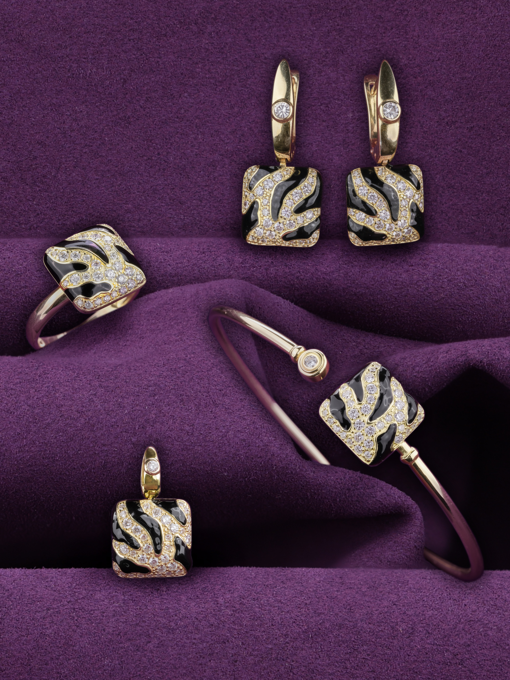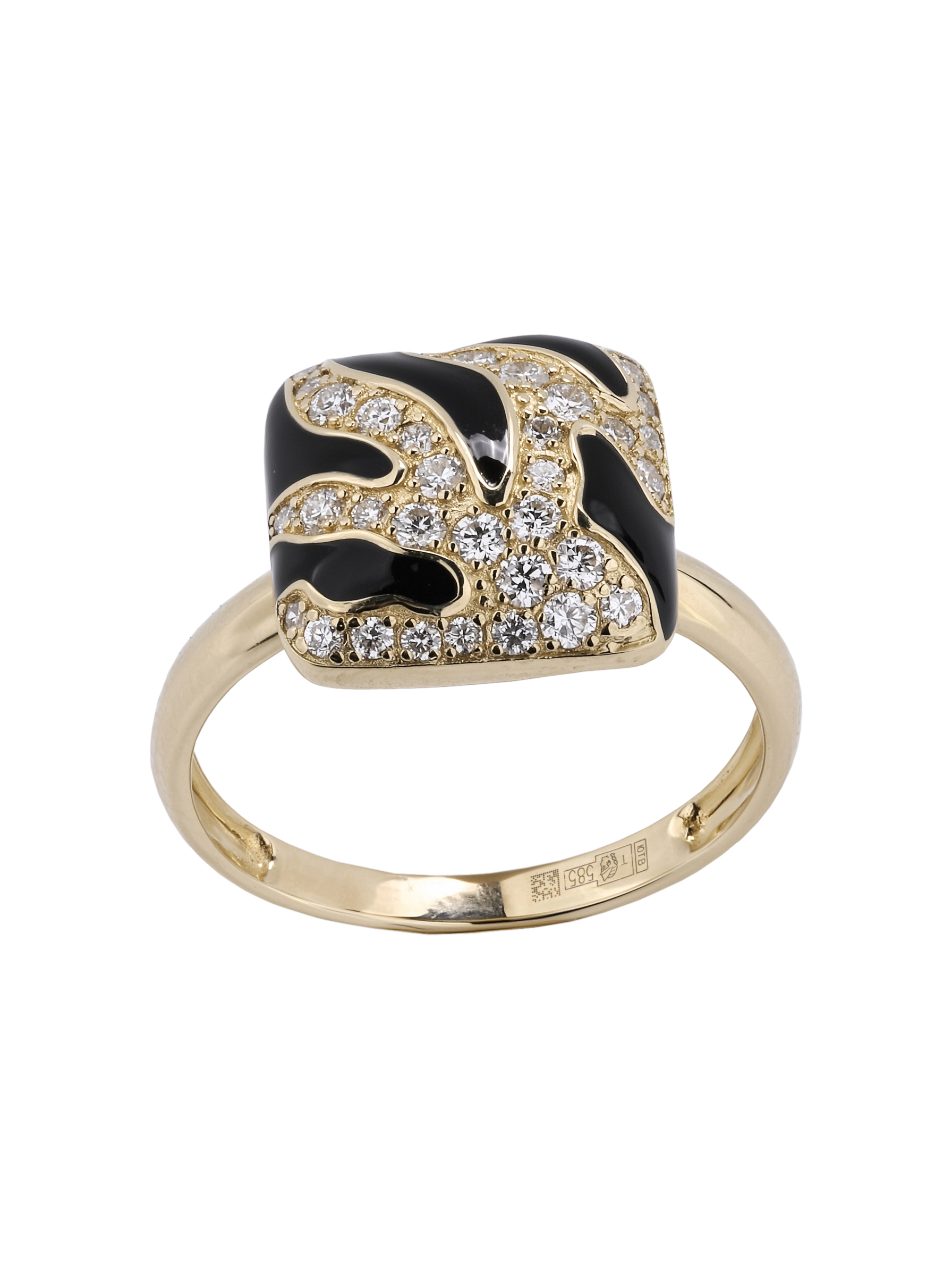 Кольцо из лимонного золота c эмалью и бриллиантами