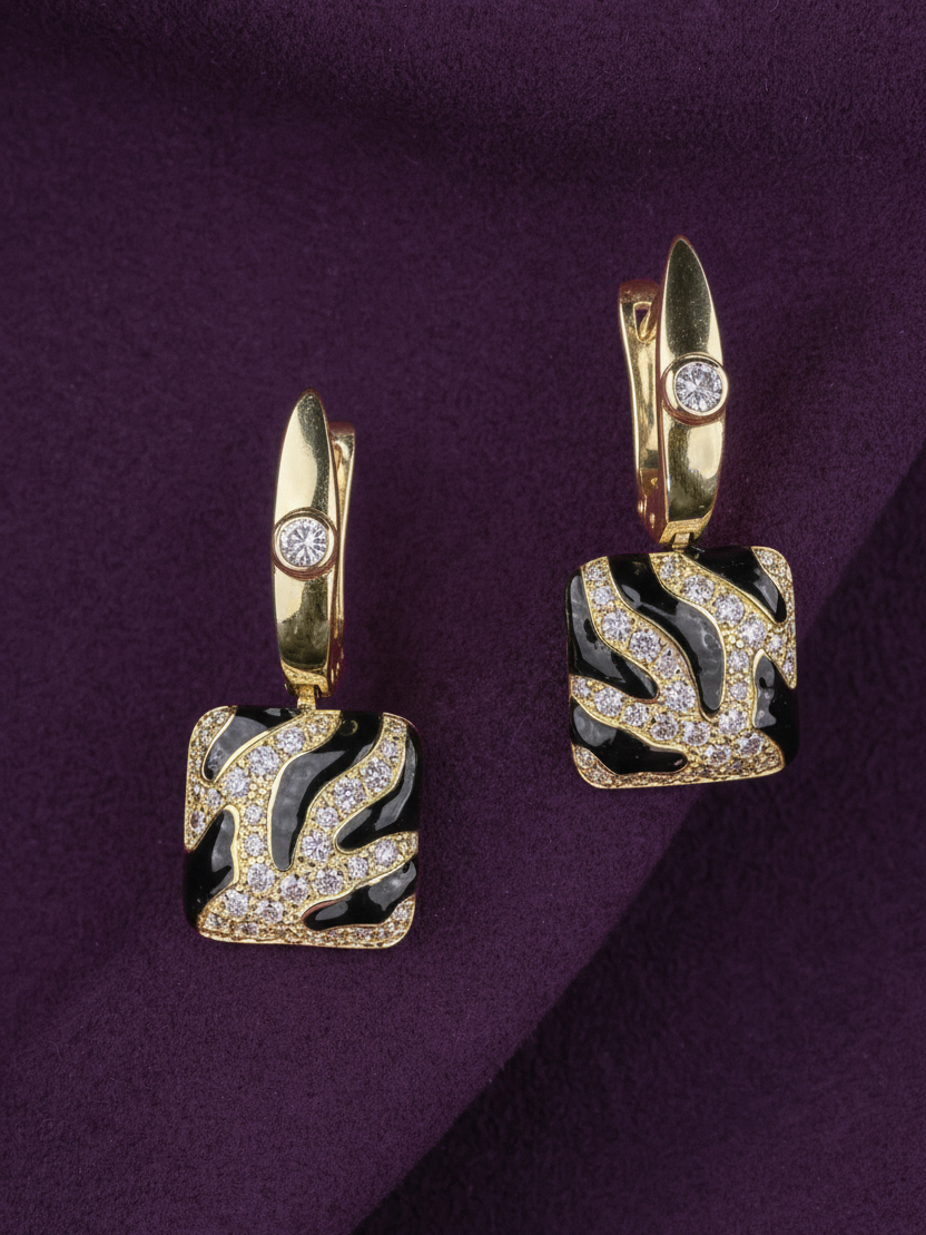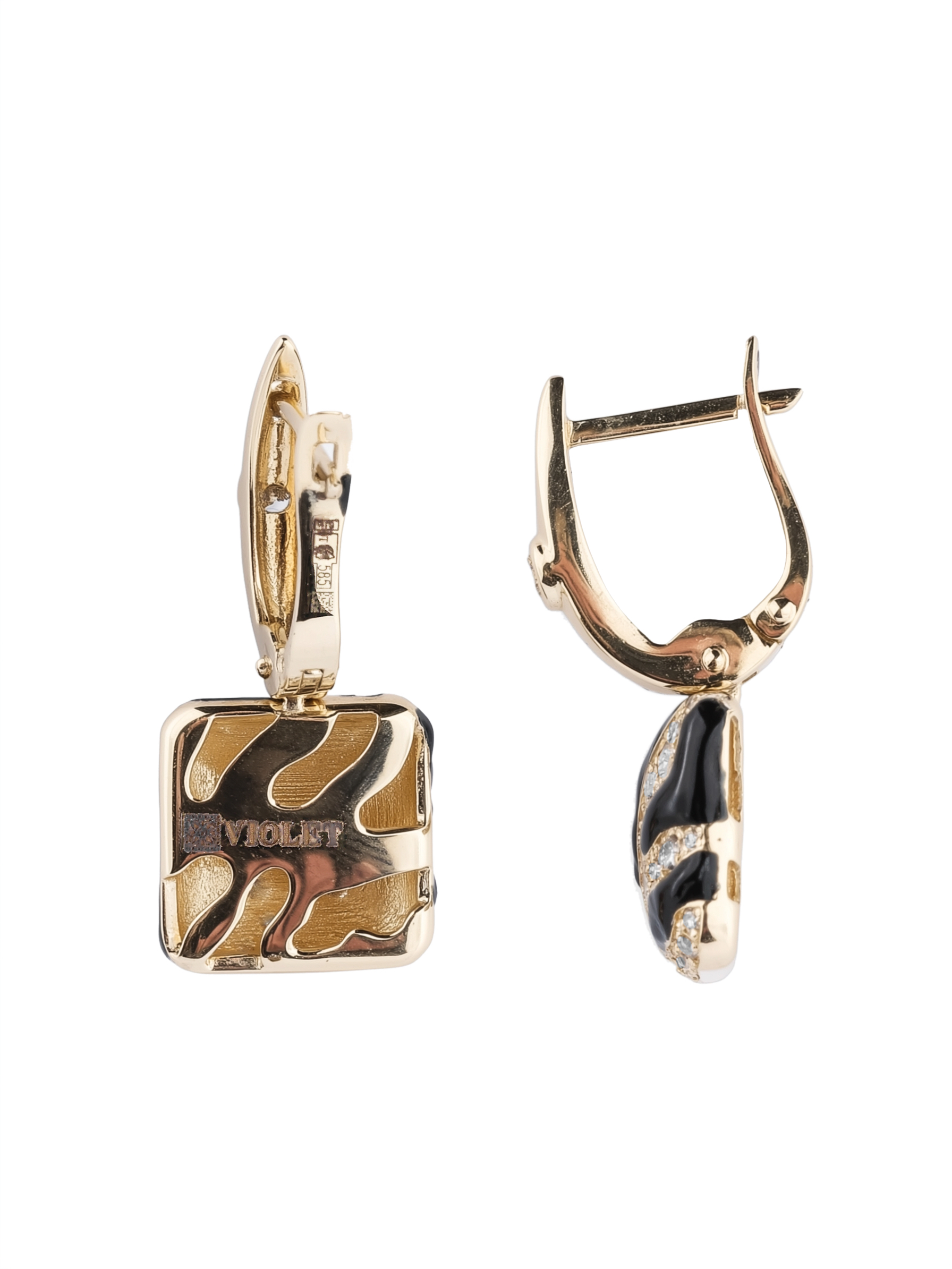 Серьги из лимонного золота c эмалью и бриллиантами