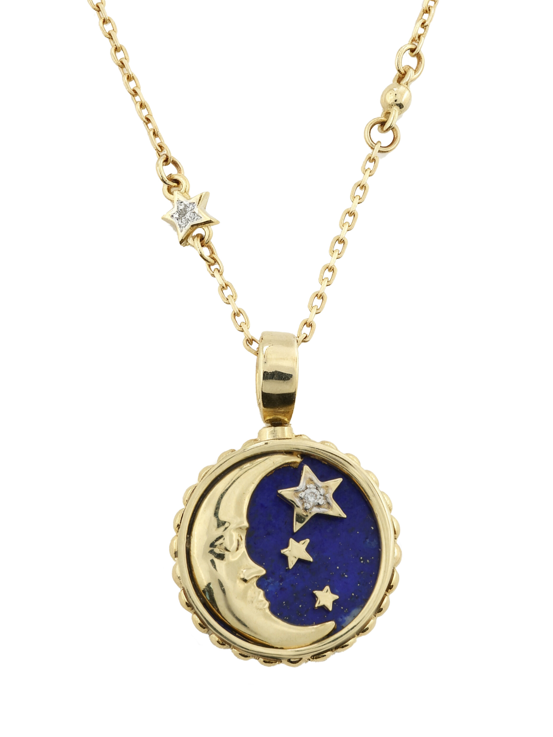 Колье из лимонного золота c бриллиантами, лазуритом и перламутром