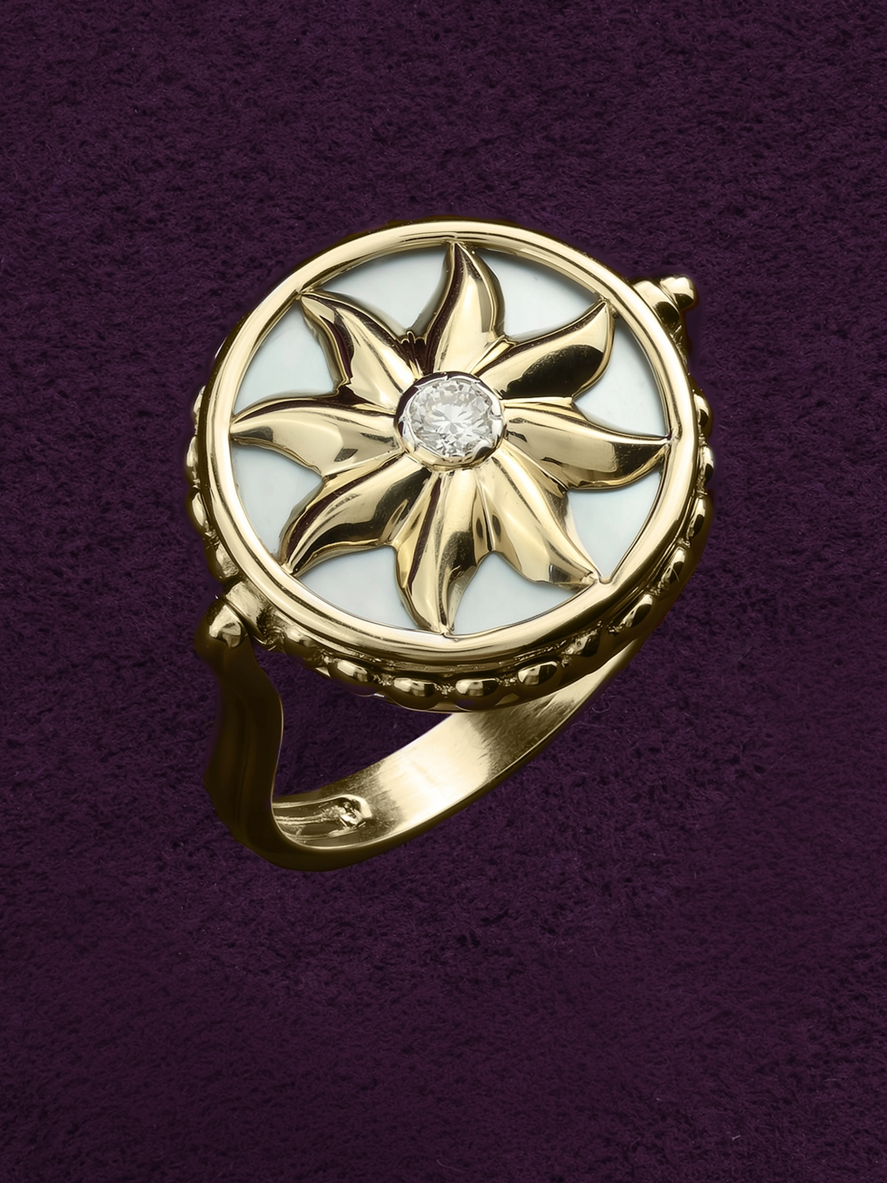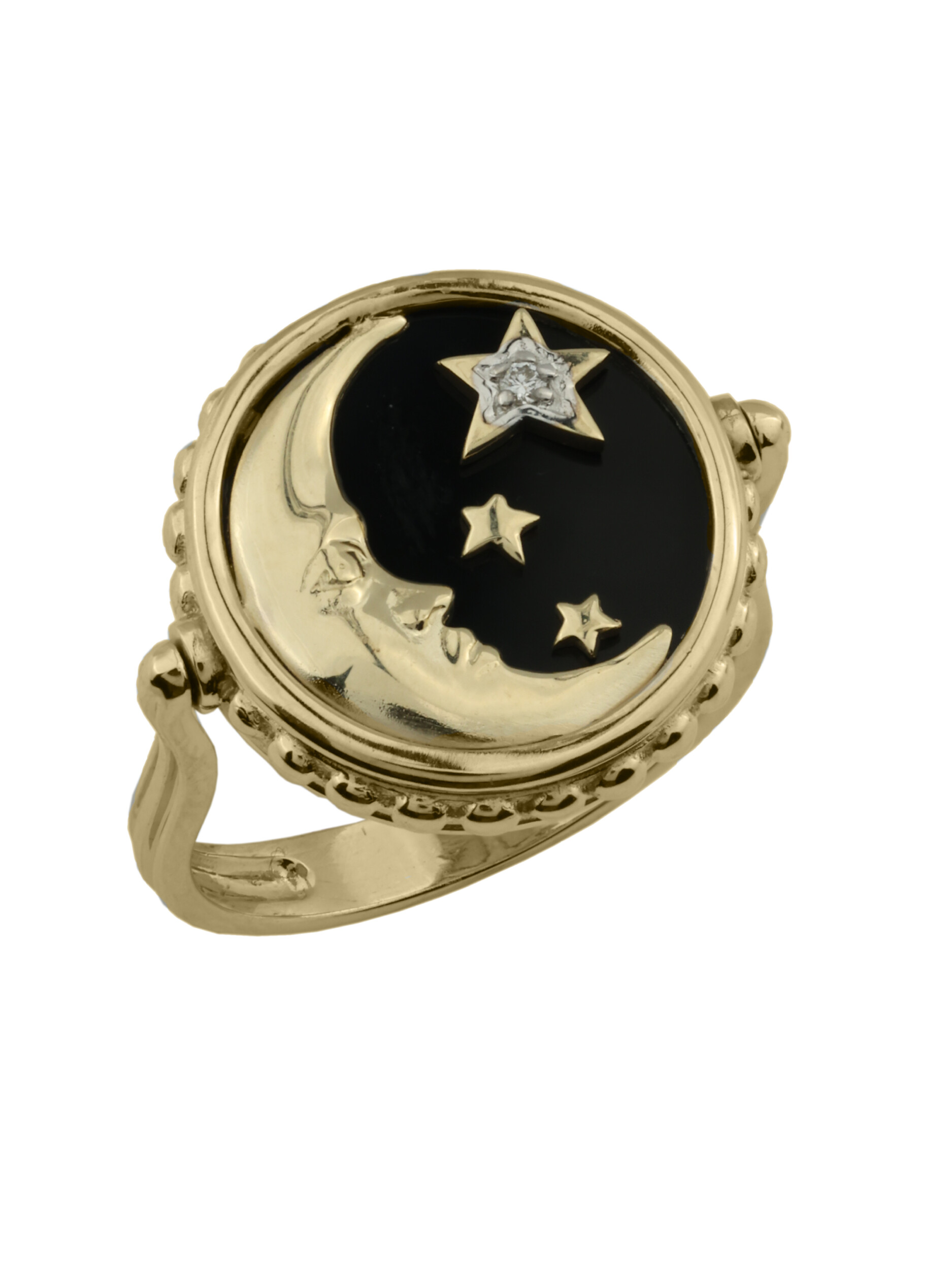Кольцо из лимонного золота c бриллиантами, ониксом и перламутром