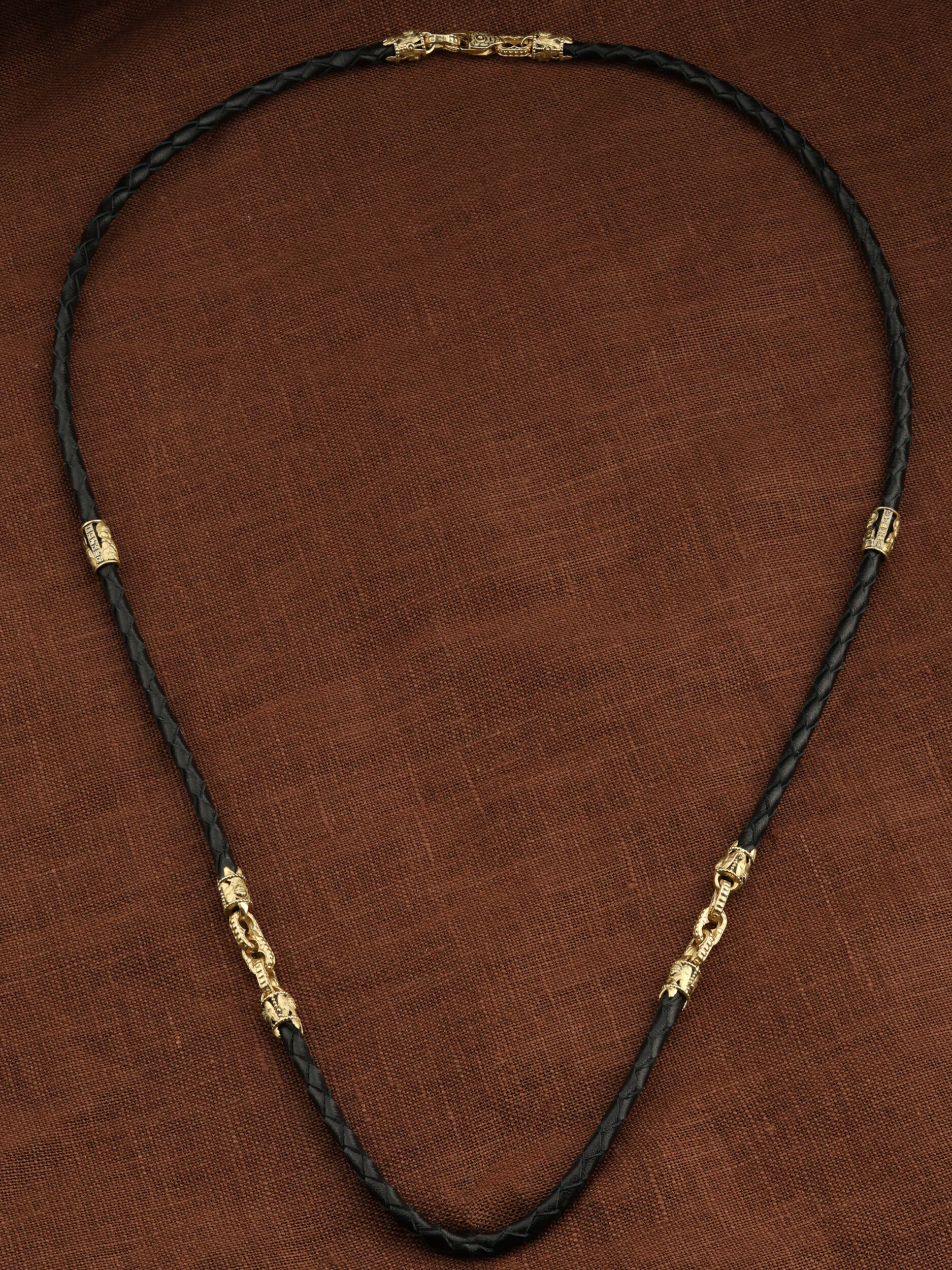 Гайтан из лимонного золота c кожаным шнурком