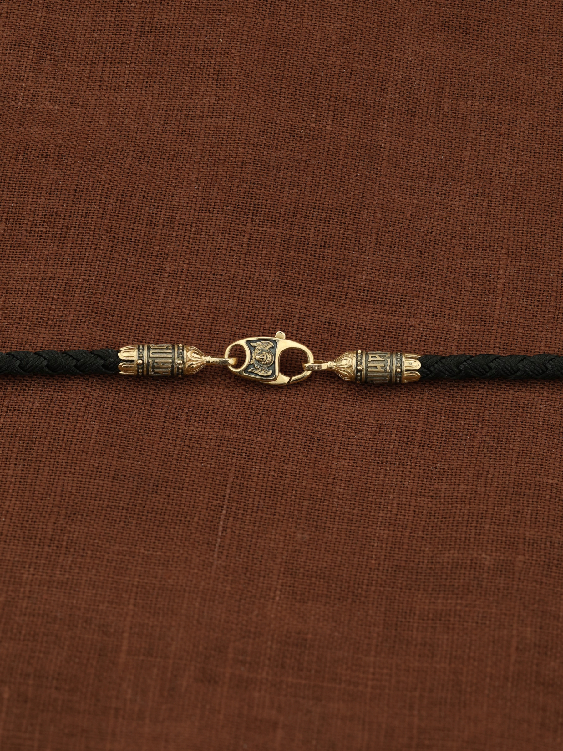 На концах цепи-шнурка расположены концевики с надписью: «Спаси и сохрани». Соединяет концевики замочек-карабин в форме рыбки. На замочке изображен шестикрылый Серафим.